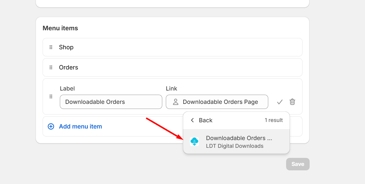 <figure><img src="https://1863660695-files.gitbook.io/~/files/v0/b/gitbook-x-prod.appspot.com/o/spaces%2F6iG7j4lDhziM0FqdCCU8%2Fuploads%2Fh3amyUVBviyWKiJgWOUn%2Fimage.png?alt=media&#x26;token=0532cef9-f7a2-4930-8cb9-000f2c352106" alt=""><figcaption><p>Click <strong>Add menu item</strong></p></figcaption></figure>
